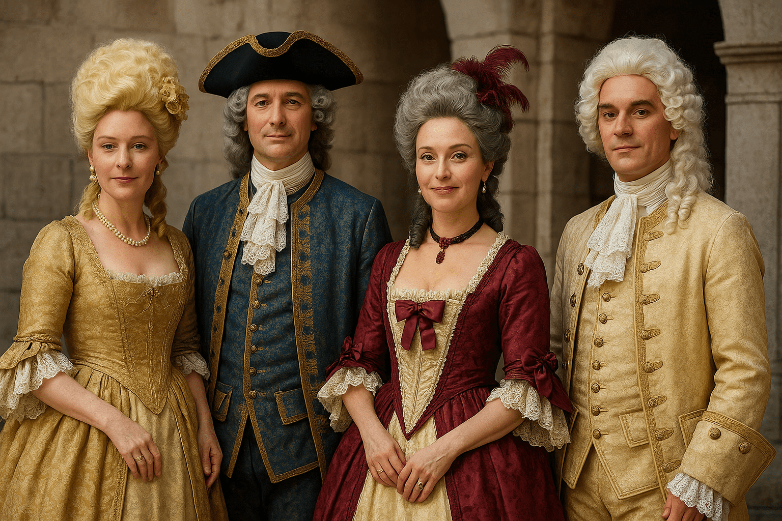 Los disfraces de aristócratas y nobles reflejan la sofisticación y el poder de las cortes europeas. La opulencia de los tejidos, la riqueza de los colores y la precisión de los cortes hacen de estos trajes verdaderas piezas de arte.
