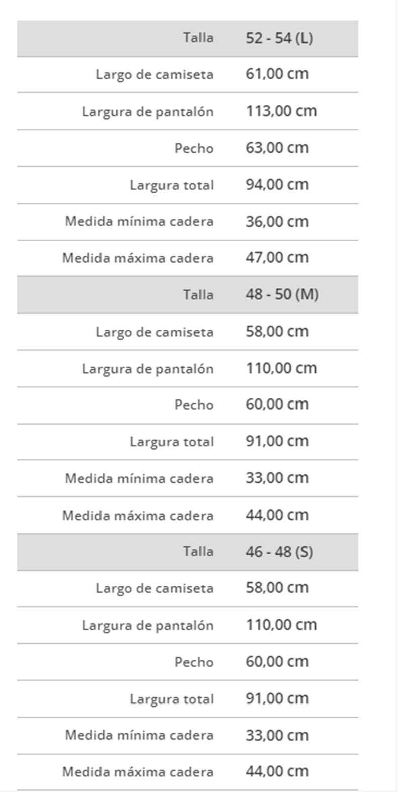 consulta la guía de tallas