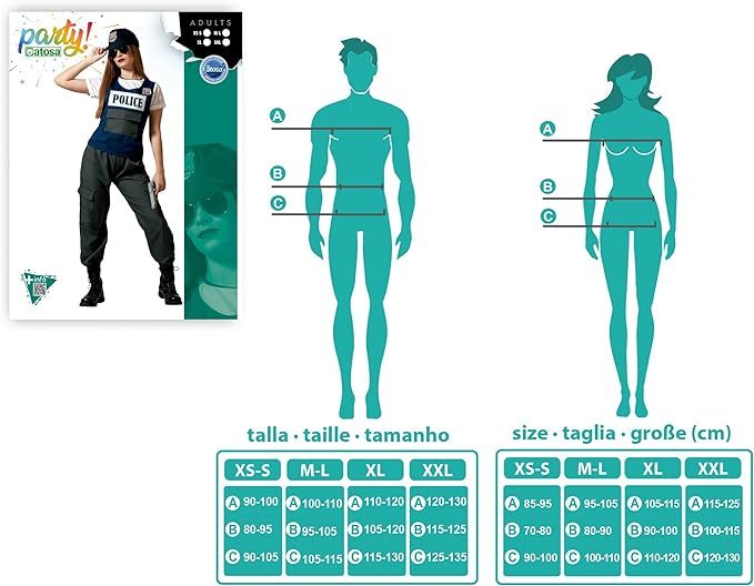 Disfraz de carnaval para mujer adulto. Contenido: gorra, camiseta manga corta y pantalón largo. No incluye calzado ni gafas de sol..