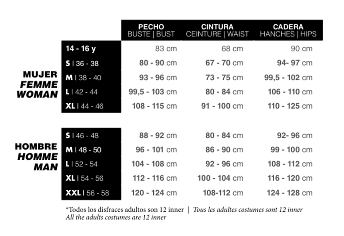 Dentro de la colección de disfraces para adultos, este modelo destaca por su estilo unisex y su facilidad para combinar con otros trajes similares. Es ideal para crear conjuntos coordinados con disfraces infantiles o para completar un look de grupo en fiestas y reuniones.