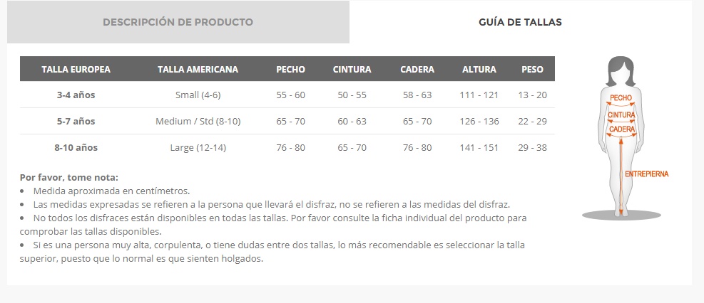 Incluye: Cinta de pelo, mono, capa, cinturón, lazo, pulseras y cubrebotas.