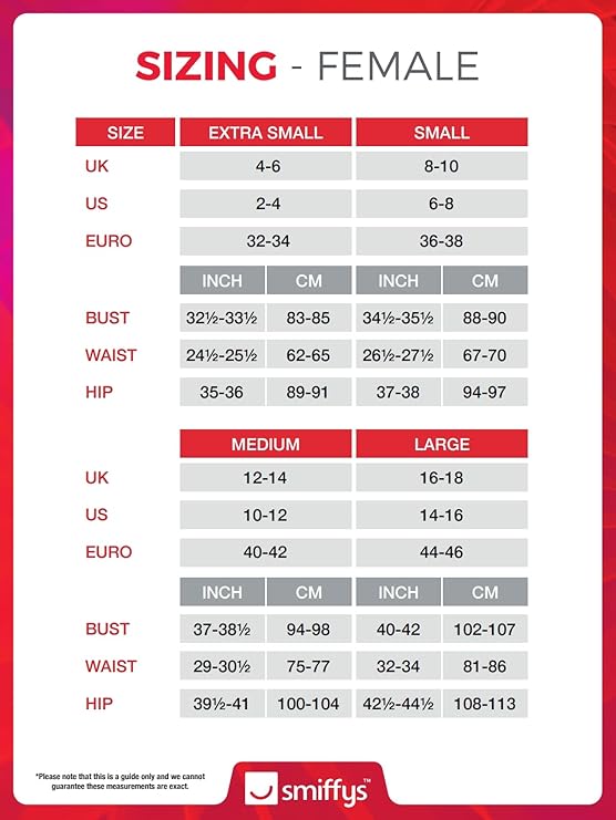 Consulta la guía oficial de tallas Smiffys para elegir la medida adecuada: